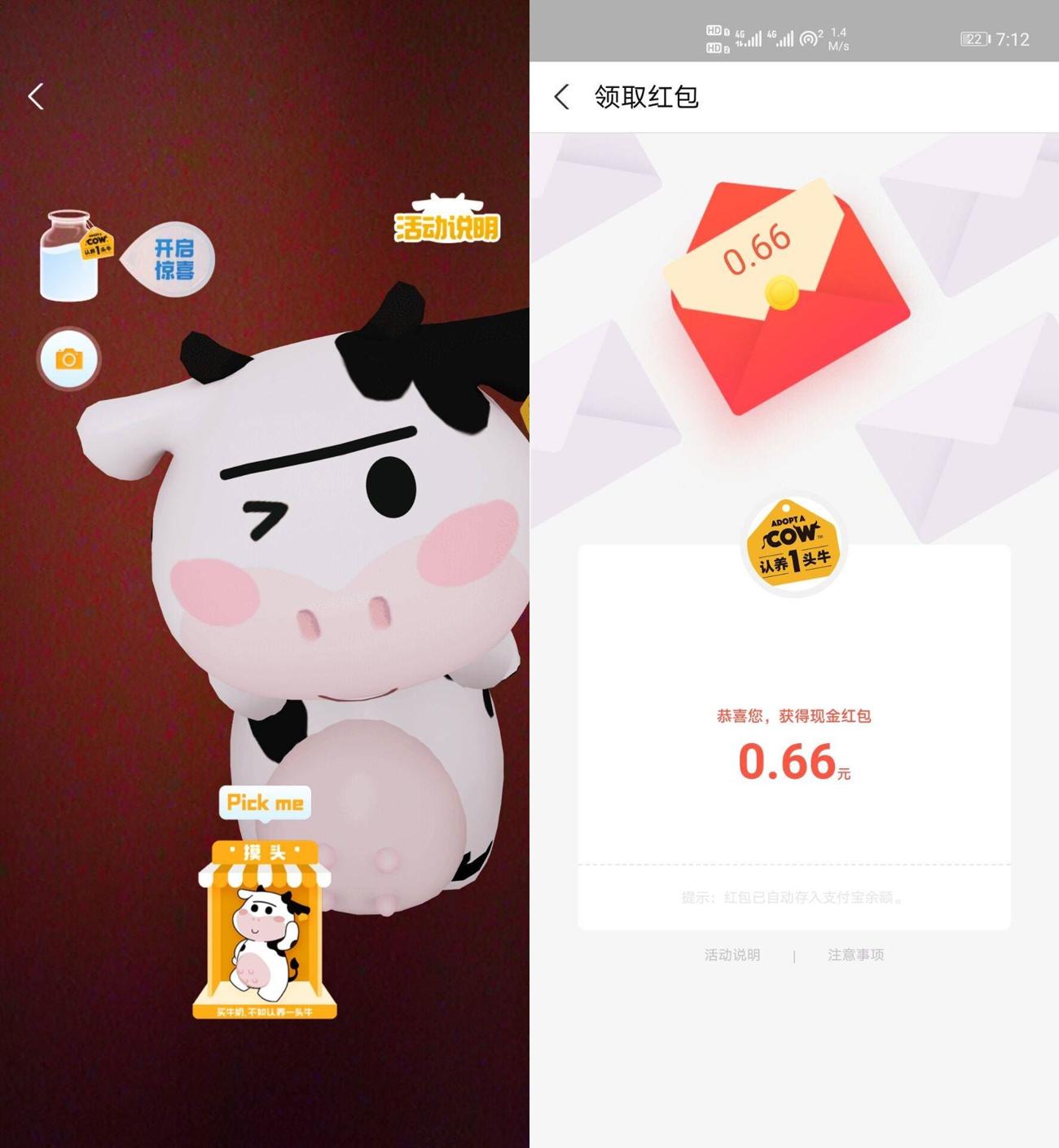 支付宝AR扫牛奶随机领红包