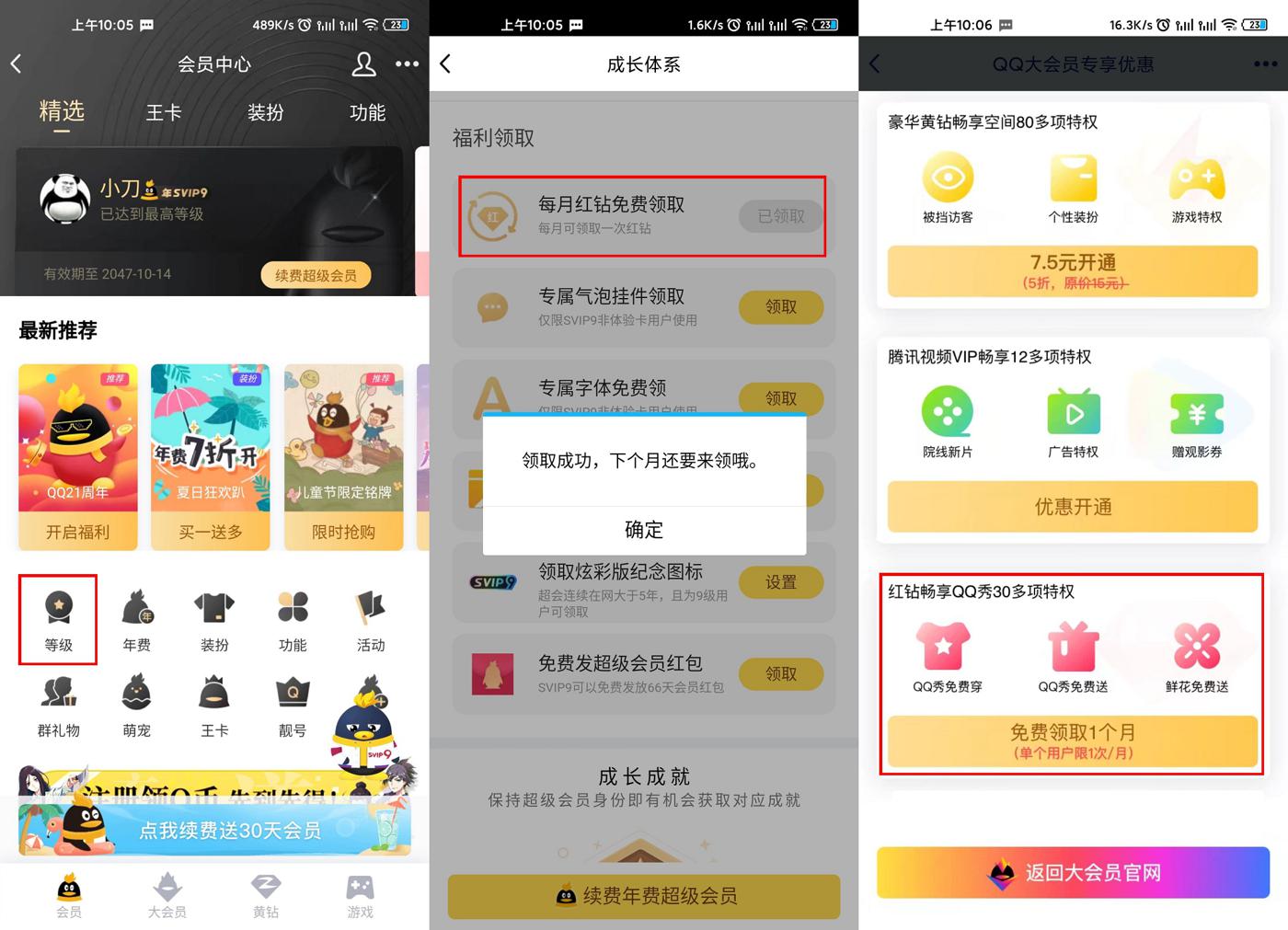 QQ SVIP9会员或QQ大会员免费领1月QQ红钻会员