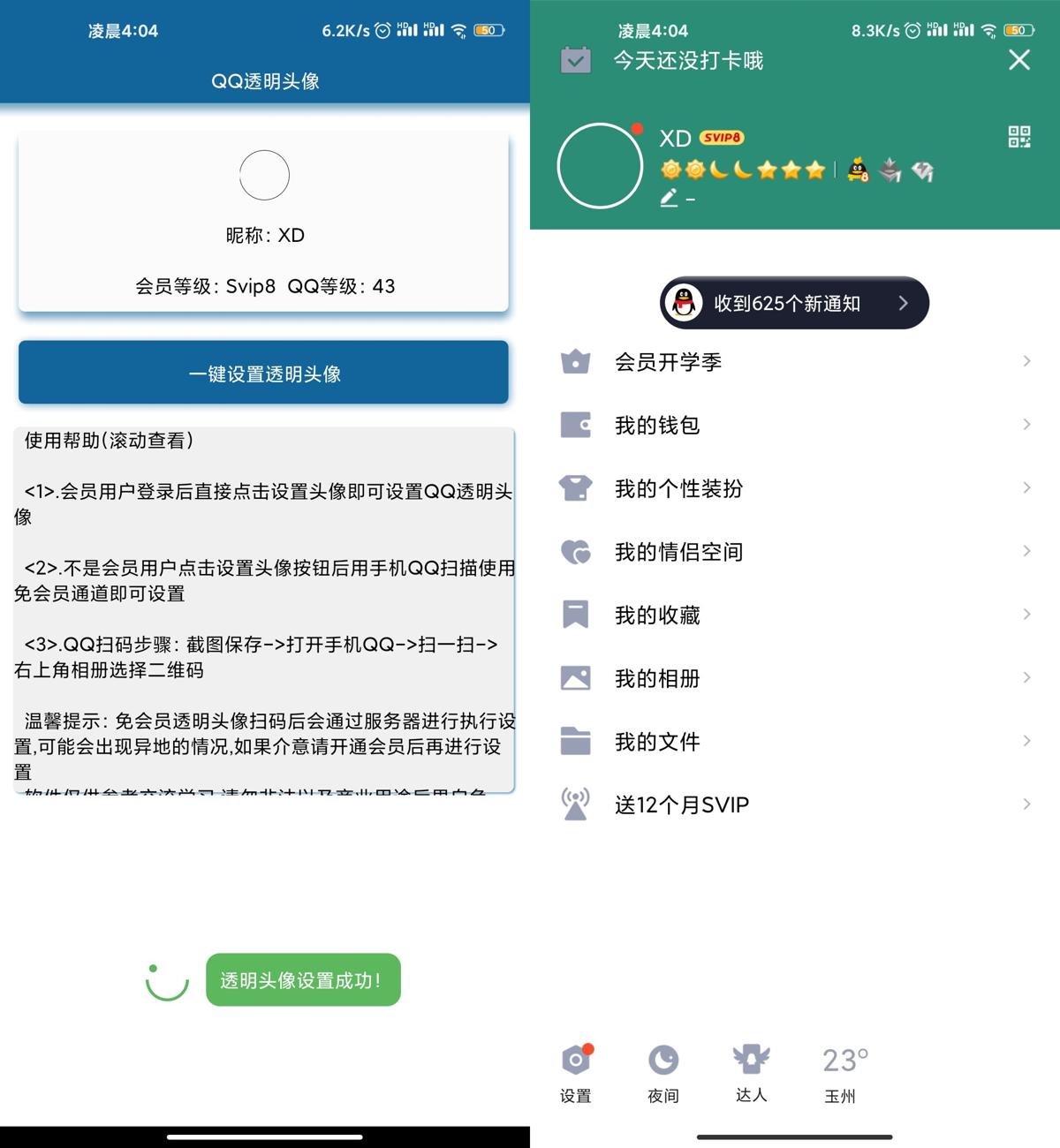 安卓QQ免会员设置透明头像