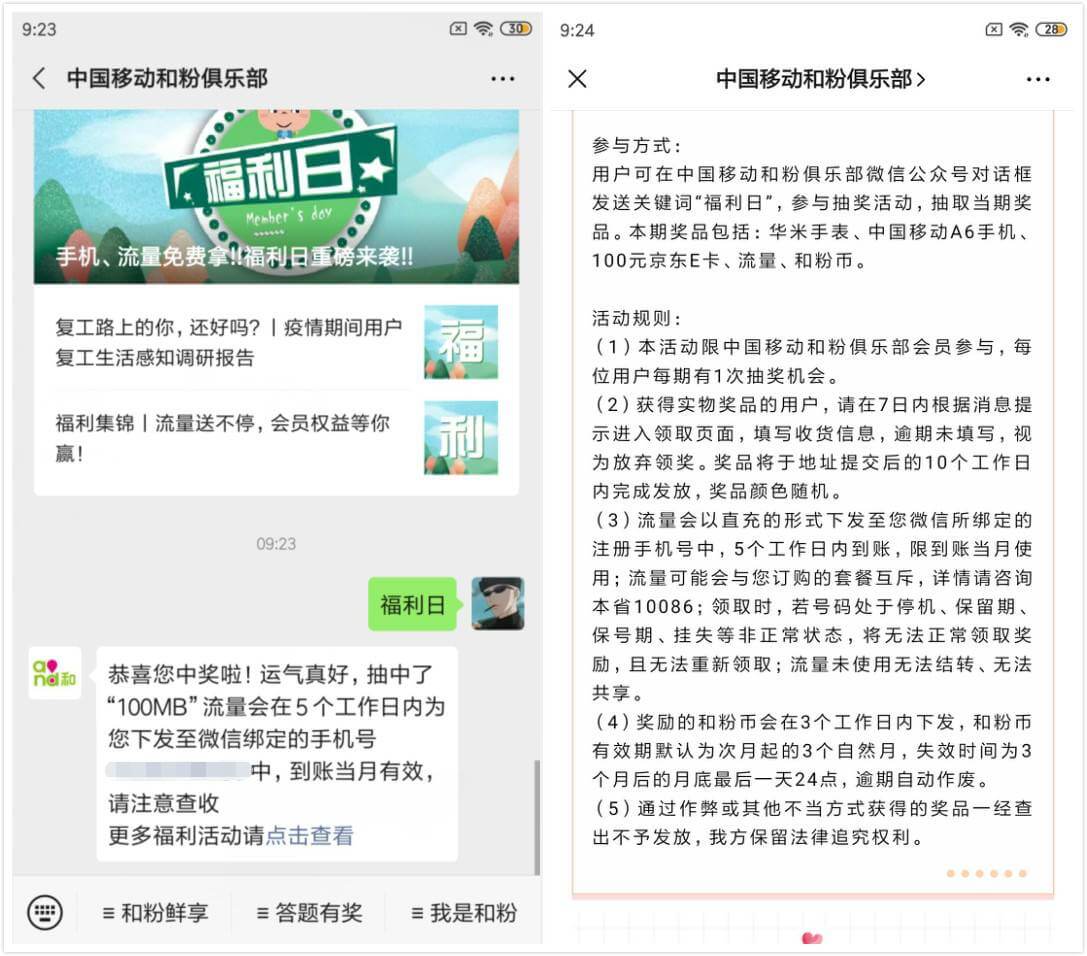 移动福利日免费送100~500M流量